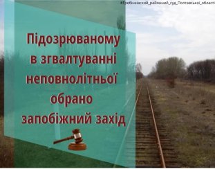 17 травня 2019р., 30-річному мешканцю Гребінківського району, підозрюваному в зґвалтуванні неповнолітньої особи (частина третя статті 152 Кримінального кодексу України), слідчим суддею Гребінківського районного суду Полтавської області, було обрано запобіжний захід у виді тримання під вартою строком на 60 днів без права внесення застави.